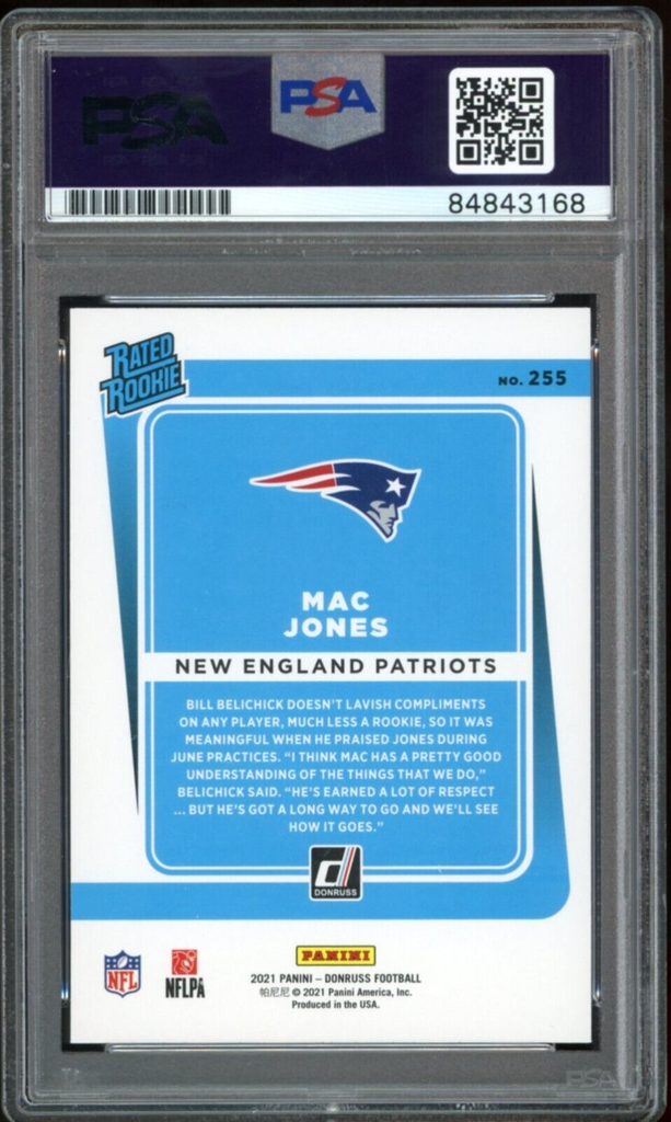 2021 Donruss Rated Rookie Yellow #255 Mac Jones On Card PSA/DNA Auto GEM MINT 10